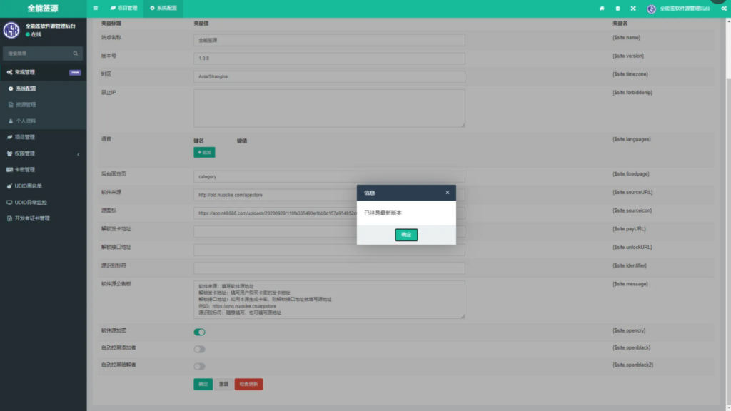 软件来源和解锁接口地址都设置为你的域名,例如:http://你的域名/appstore,源识别标符不确定写什么?直接填你的源地址也可以。